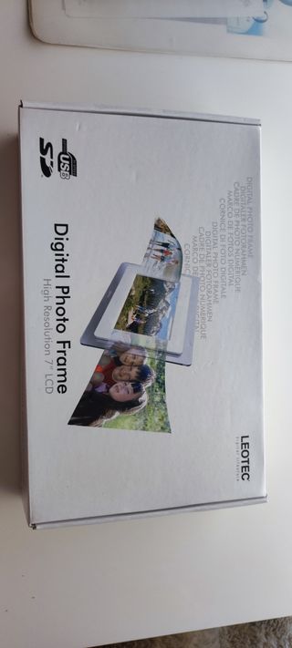 Marco de fotos digital LEOTEC en perfecto estado. Incluye el marco, el cargador y el cable USB. - Pantalla LCD de 7 pulgadas. - Alta resolución. - Fácil de usar.