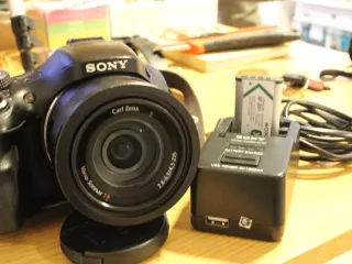 Cámara digital Sony con lente Carl Zeiss. - Zoom óptico x50 / Digital 130x - pantalla retractil - Lente Vario-Sonnar T* 2.8-6.3/4.3-215. - Incluye cargador de batería Sony.(2 baterías) - Batería NP-BX1. - video a 60Fps La camara tiene error E:62:10 que va en el óptico, funciona y puede tomar fotos y video normalmente, solo que para ciertas configuración en manual tiene una leve vibración. El óptico en Aliexpress se consigue entre 60 a 70€. El precio es negociable.