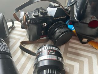 Vendo pack vintage de camara fotos Praktica y accesorios. preguntar por chat especificaciones tecnicas Accesorios: - Zoom tokina gran angular 200mm 58 diametros 1:3.5 - Zoom Flektogon 35mm 2.8 - Flash PRO/550 - Funda camara Praktica estos objetivos se pueden usar en camaras digitales con adaptador de montura m42