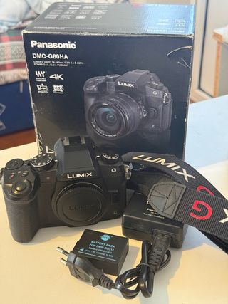 Cámara digital Panasonic Lumix G80 con su caja y accesorios de la imagen. Perfecta para foto y para video 4k, cuerpo con estabilizador y sellado contra agua y polvo. - Incluye cargador de batería, bateria original y batería extra clonica . - Sensor en perfecto estado sin polvo o marcas. - Correa Lumix. - Caja original. - Cuerpo en buen estado y con menos de 4500 disparos. Camara Lumix-Olympus-Micro 4/3-MFT-Mirrorless EVIL