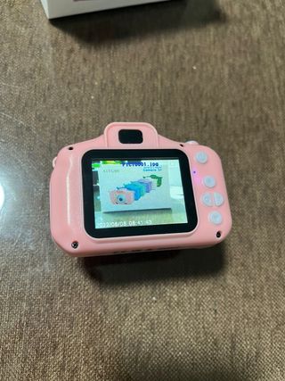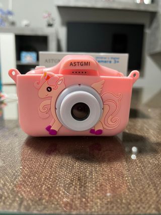 Cámara de fotos digital infantil con diseño de unicornio. En su caja, se ha usado tan solo un par de veces INCLUYE: - Funda rosa con diseño de unicornio - Cuerda para colgarla - Cargador - Tarjeta micro SD - Color rosa vibrante. - Divertido diseño de unicornio con alas. - Ideal para los más pequeños.