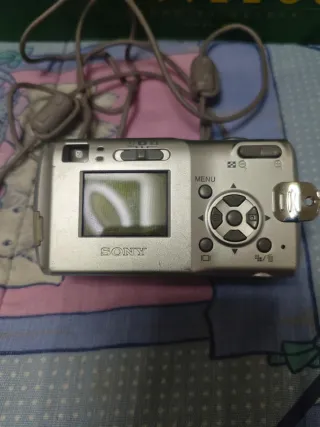 Cámara digital compacta Sony Cyber-shot.Rota,enciende pero no tira fotos,deja la pantalla en blanco. Apta para piezas o coleccionismo. Incluye cable y Memory Stick Pro Sony de 256 mb. - Zoom óptico 3x. - Lente Carl Zeiss Vario-Tessar.