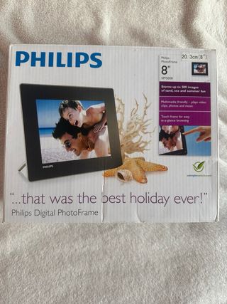Portaretratos digital Philips de 8 pulgadas. Ideal para mostrar tus recuerdos. - Pantalla de 20.3 cm (8 pulgadas). - Modelo SPF5008. - Capacidad para almacenar hasta 500 imágenes. - Reproduce vídeos, clips, fotos y música.