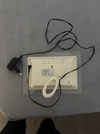 Marco digital con pantalla. - Marco de color blanco. - Pantalla negra.