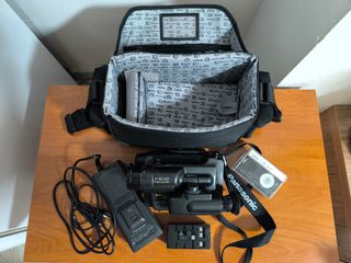 NO FUNCIONA PARA PIEZAS Vendo videocamara retro vintage muy antigua panasonic nv-s7e x16 digital zoom palmcorder en perfecto estado aunque desconozco funcionamiento no la he provado. Incluye todo lo que sale en las fotos : maleta o maletin, cargador, bateria cinta para grabar y la videocamara.