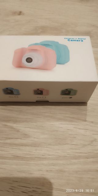 Cámara digital diseñada para niños, con un divertido diseño en color azul y detalles amarillos. - Incluye manual de instrucciones. - Correa de sujeción azul. - Cable de carga. Nueva, en su caja original. Solo abierta para las fotos . Regalo un detalle de niño..