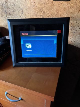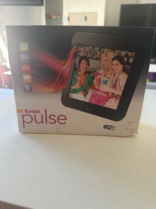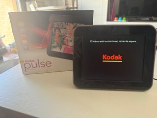 Marco digital Kodak para mostrar tus fotos favoritas. Después del verano lo mejor es ver las fotos que hiciste. Funciona con pendrive o tarjeta.Viene con su cargador. todavía tiene hasta el plástico salva pantalla, Medida: 19 x 16 cm. Color negro. Un chollo para el primero que llegue solo 8 €.De puede colocar tanto horizontal como vertical. - Diseño moderno y elegante. - Pantalla nítida para una visualización clara.