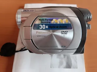 Videocámara Panasonic VDR-D150 con capacidad para grabar en DVD. - Compatible con DVD-RAM, DVD-R y DVD-RW. - Botones de control de acceso y expulsión de disco. - Lente con zoom óptico 30x y digital. - Adaptador Tarjeta SD - Caja Original - Prácticamente nueva - Accesorios Originales según foto - Disco DVD-RW 30M - Manuales instrucciones originales - No se hacen envíos