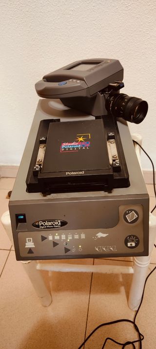 Estudio Fotográfico digital profesional Polaroid SP119. Realiza fotos de tamaño carnet en diferentes formatos al instante. El estudio cuando le das corriente enciende, pero no se ha probado. Tiene un conector en la parte trasera suelto. Cualquier duda preguntar