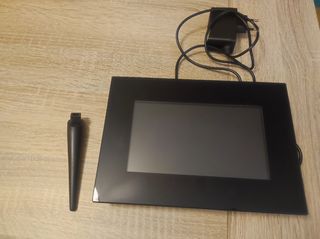 Marco de fotos digital con acabado brillante en color negro. - Pantalla de alta resolución. - Diseño moderno y elegante. - Incluye cables de conexión.