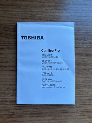 Videocámara Toshiba Camileo Pro en color negro y plateado. Es un dispositivo 8 en 1 que funciona como videocámara digital, cámara de fotos, webcam, grabadora de voz, reproductor MP3, dispositivo de almacenamiento masivo y detector de movimiento. - Zoom óptico 3x y zoom digital 4x. - Sensor CCD de 7.0 Mega Píxeles para una excelente calidad de imagen. - Compatible con formatos MP3, MPEG-4, AVI, JPEG y WAV. - Incluye distintivo RoHS y certificación Windows.