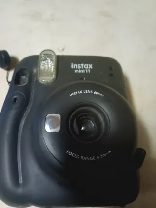 Cámara instantánea Fujifilm Instax Mini 11 en color negro. Ideal para capturar momentos de forma divertida y obtener fotos al instante. - Flash integrado. - Lente Instax 60mm. - Rango de enfoque de 0.3m a infinito.