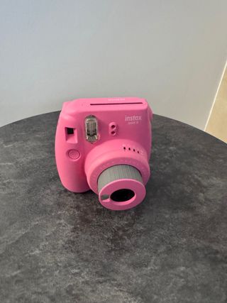 Cámara instantánea Fujifilm Instax Mini 9 en color rosa. Ideal para capturar momentos de forma divertida y obtener fotos al instante. - Lente con enfoque de 0.6m a infinito. - Incluye correa para la muñeca. -No trae recambio de fotos - viene con funda protectora de tercio pelos por dentro y dura -valorada en 187€