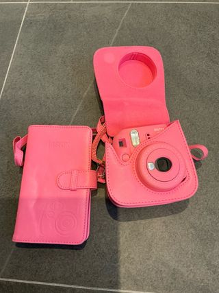 Cámara instantánea Fujifilm Instax Mini 9 en color rosa. Incluye su funda protectora a juego. - Funda protectora. - Correa para colgar. - Totalmente funcional. - Va con pilas. - Carrete de fotos no incluidos. Ubicado en el puerto de Santa María Precio totalmente negociable Envíos disponibles Si te interesan más cosas no dudes en visitar mi perfil