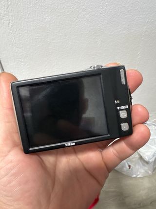 Cámara digital Nikon Coolpix S6000 plateada con 14.2 megapíxeles. Es compacta y fácil de usar. La camara digital FUNCIONA PERFECTAMENTE.lo unico que no cierra del todo las pestaña pero no afecta para nada en las fotos ,va con el cable USB cargador y para pasar fotos al ordenador y su batería, adjunto fotos hechas con el flash de la cámara en la galería. Hago envíos el mismo día laborable. - Zoom óptico 7x. - Pantalla LCD de 2.7 pulgadas. - Estabilización de imagen VR.