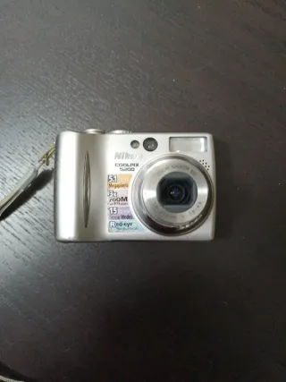 Cámara digital Nikon Coolpix 5200 en color plateado. Compacta y fácil de usar. Leer** la batería falla Dura unos minutos De ahí su precio Tiene golpes en la esquina Ver foto ,esquina superior Zoom no funciona. - 5.1 Megapíxeles - Zoom óptico 3x - 15 modos de escena - Reducción de ojos rojos Con batería nueva tienes una buena cámara para aprender y jugar Las fotos salen bien y hace video también. No hay cargador No hay sd, Se envía la cámara con su batería cargada original . Es de fabricación metálica