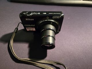 Cámara digital Nikon Coolpix S3600 en color negro. Incluye accesorios para su uso y transporte. Está en perfecto estado. - Funda protectora para la cámara. - Tarjeta de memoria SD. - Batería recargable. Tendrás que comprar el cable para cargarla con la última foto se puede ver el puerto.