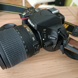 Cámara de fotos Nikon D5100 con objetivo 18-105mm en perfecto estado. Incluye una batería, tripode con botón a distancia y tarjeta de memoria de 32GB. Incluye caja original con accesorios