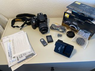 Cámara réflex digital Nikon D5200 en color negro, ideal para fotografía. - Objetivo Nikon con tapa. - Correa para colgar. - Bolsa de transporte Nikon. Camara canon impoluta, se uso solo 3 veces. Se entrega con todos los accesorios que aparecen en las fotos, objetivo, flash, cargador, adaptadores, mochila, etc.