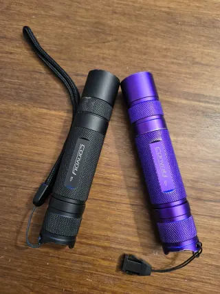 2 linternas Convoy S2+ personalizadas, ideales para fotografía nocturna. LEDs de temperatura de color 3000K (cálidos) e índice de reproducción cromática CRI 95 (sin dominantes magentas o verdes). Lentes TIR para difundir la luz y así dar un haz más homogéneo. 5 niveles de luz para ser más modulable: 0'1%, 1%, 10%, 35% y 100%. Incluye dos baterías 18650 de 3400 mAh.