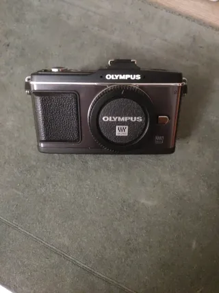 Cámara Olympus PEN E-P2. La cámara funciona perfectamente pero avisa de un problema de estabilización aunque no perjudica a las fotos que salen de manera correcta. - Se vende solo el cuerpo de la cámara, con la batería incluida y el cargador. - Diseño compacto y elegante. - Cuerpo de metal. - Pantalla LCD.