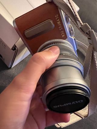 Como nueva, usada dos veces y siempre en su funda. Además tiene la pantalla táctil con protector de cristal. Objetivo 14-42 mm f3.5-5.6. Es una cámara muy buena con buena calidad de imagen a la altura de una reflex. Pequeña y ligera con un diseño retro precioso. Fácil de usar. Con WiFi, te puedes pasar las fotos directamente a tu teléfono móvil. Pantalla extraible perfecta para hacer selfies, video blogs, etc. Se entrega con libro de instrucciones, Flash y funda de flash, correa, funda, caja, cable USB, limpiador, batería y cargador. Todo original.