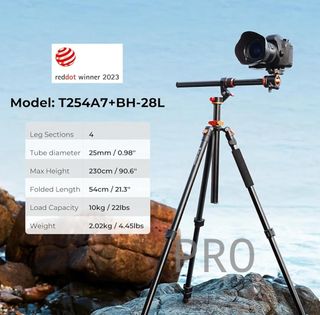 Material: Aleación de aluminio (ligero y resistente). • Altura máxima: Aproximadamente 177 cm (70 pulgadas). • Cabezal: Giratorio de 3 vías con placa de liberación rápida (quick release), ideal para fotos panorámicas y cambios rápidos entre horizontal y vertical. • Secciones de patas: 4 secciones con cierres de clip (flip-locks). • Extras: Columna central ajustable, gancho para peso (estabilidad extra) y pies de goma antideslizantes. Funda
