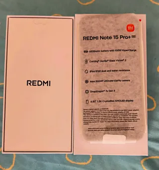 Vendo el nuevo Redmi Note 15 Pro+ 5G actualizado HyperOs 3, el rey de la gama media de este 2026. Es un teléfono diseñado para quienes no quieren cargar el móvil en dos días y buscan fotos de nivel profesional. Estado: Impecable, aún lleva el protector de pantalla de origen y usado siempre con funda protectora. Comprado 10 de febrero de 2016. HyperCharge de 100W. Lo mejor: Su batería de 6.500 mAh es inagotable y su cámara de 200MPx con OIS saca fotos increíbles incluso de noche. Pantalla 6.83" 1,5K Super fluida de 120Hz con un brillo espectacular (3200 nits) para verla bajo el sol sin problemas. Se entrega factura para la garantía