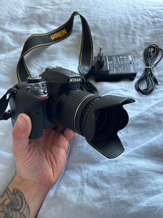 📸 Nikon D3400 + 18-55mm (Kit completo) 🔥 Cámara réflex Nikon D3400 en muy buen estado, lista para usar desde el primer día. Ideal para iniciarse en fotografía con calidad profesional. 🔹 Incluye TODO lo necesario: • Cámara Nikon D3400 • Objetivo AF-P DX 18-55mm f/3.5-5.6G (muy versátil) • Batería • Cargador original • Cable USB • Parasol • Correa Nikon 🔹 Lo mejor de esta cámara: • 📷 24.2 MP (fotos con calidad muy superior al móvil) • 🎥 Vídeo Full HD 1080p hasta 60fps • 🔋 Batería de larga duración (mucho mejor que otras réflex de su gama) • 📱 Bluetooth (SnapBridge) para pasar fotos al móvil • 🪶 Muy ligera y fácil de usa