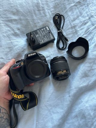 ✅ Nikon D3200 con batería, cargador, bolsa de transporte, mando a distancia, tarjeta de memoria y objetivo con estabilización. Está muy cuidada, tal cual en las fotos. Fue un regalo. Cámara de 24.2 megapixeles, en las últimas fotos se puede ver la calidad de imagen. Tan solo tiene 6500 disparos. 🎁 Es una cámara con una calidad profesional para fotos, perfecta para iniciarse y para aprender a usar una cámara profesional de manera manual. 🎦 Graba videos 1080 fullhd 📤 Se hacen envíos
