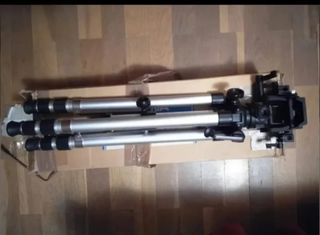 Trípode profesional de la marca DAIWA, en perfecto estado. Subidas fotos de todas las piezas. Cabezal de video amortiguado: similar en caracteristicas a Manfrotto 075. Tres secciones más columna de cremallera. Rótulos con doble manera y zapata rápida. Incluyo cable para control remoto de camara de 10 pines, sin controlador. Embalaje original. Medidas cerrado cm. abierto 160 cm.