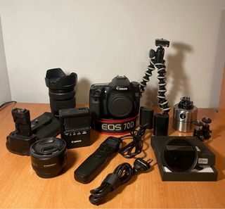 Se vende cámara de fotos Canon EOS 70D con un gran número de accesorios. Se encuentra en perfecto estado, con algunas marcas propias de un uso profesional. Incluye: -Cámara Canon Eos 70 D -Objetivo Canon 18-135mm -Objetivo Yongnuo fijo 59 mm -Filtro de densidad variable ABS Ultra slim ND2-400 67mm -Temporizador de disparo Neewer -Joby Gorilla Pod -Batería Canon -Batería Hama -Cargador Canon -Empuñadura de Baterías Vertax -2 Adaptadores para accesorios -Temporizador modificado para hyper-lapses Solo ofertas serias.