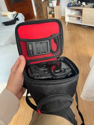 Estupenda cámara de fotos marca Canon, tiene muchos años pero está prácticamente nueva. En su momento fue la pionera de las cámaras regalo el zoom y os aclaro que no es digital es de carrete como antiguamente nos gustaban las fotos. La mando en su bolsa original