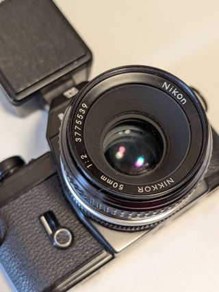 Kit de Cámara analógica Nikon EM con accesorios: - Objetivo Nikon Nikkor 50mm f2 - Flash Nikon SB-E Siempre ha estado muy cuidada, y funcionando a la perfección, pero hace ya más de 10 años que no la utilizo; ha estado bien guardada. No tengo película así que no la puedo probar. Adjunto fotos que hice personalmente con esta cámara, a modo de muestra.