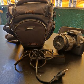 Vendo cámara Canon EOS 4000D en condiciones casi como nueva con todos sus accesorios originales. Incluye: - memoria SD 16 GB - Objetivo canon de kit 18-55mm - Objetivo canon de 50mm - Tres baterías. ( 2 canon + 1 Hama ) - Cargador de baterias - Bolso organizador impermeable La cámara sin ningun golpe ni rayon, muy mimada, igual que los objetivos están prácticamente nuevos. Yo se que a veces da desconfianza comprar una camara de segunda porque no sabes como la han tratado pero en este caso se vende por que me he comprado otra camara, y la que ves en las fotos esta muy muy cuidada y quiero que alguien mas la pueda aprovechar.