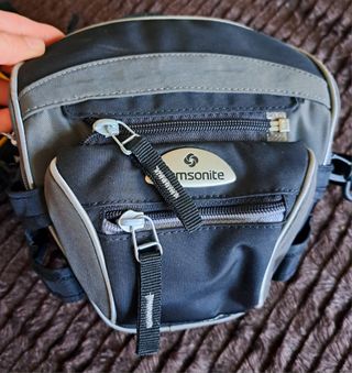 Conjunto de dos fundas para cámara de fotos tipo reflex. Ver detalles de bolsillos en ambas en las fotos. La Samsonite tiene la posibilidad de quitar y poner el bolsillo delantero. La Vantage no tiene correa pero se puede adaptar cualquiera. Posibilidad de venta por separado. Consultar precios.