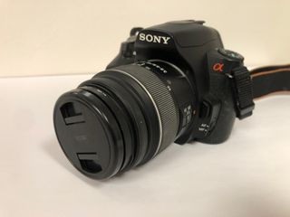 Cámara fotográfica Sony Alpha 230 en color negro. Ideal para capturar tus momentos. - Objetivo 3.5-5.6/18-55. - Incluye tapa de objetivo, cargador y tarjeta de memoria