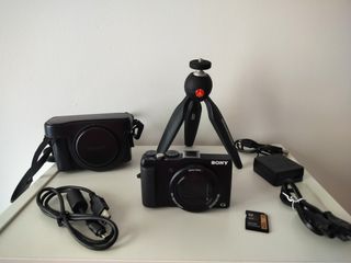 Cámara SONY DSC-HX60V con todos los accesorios que aparecen en las fotos. Funda, trípode, cargador, cable de conexión, tarjeta de memoria de 32GB, correa de muñeca, protectores de pantalla extras y uno instalado. Poco uso y cuidada. También tiene su caja.