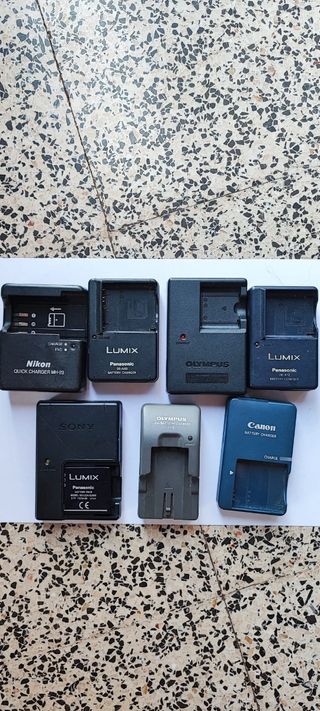 vendo lote de cargadores para camaras de fotos digitales Panasonic lumix DE-A60 Panasonic lumix DE-A12 Nikon Quick Changer MH-23 Olympus LI-40C Olympus LI-10C Canon CB-2LVE Sony BC-CS3 Fucionan perfectamente 10€ por cada uno No envio ,entrega en mano.