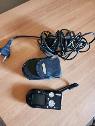 Cámara SONY CYBERSHOT de 3.2 mega píxels con tarjeta original de 128 MB. Funciona perfectamente. No dispongo de los cables. Se entrega con la funda que se ve en las fotos.