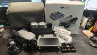 Opciones: Sin filtros ni tarjetas 700€ Con filtros 725€ Con tarjetas sin filtros 750€ Con todo 775€. DJI Air 3 con kit vuela más. - Incluye bolsa de transporte. - Incluye control remoto RC2 - Incluye 3 baterías, los ciclos de carga en las fotos, 38/30/28. - Incluye hélices de repuesto. - Incluye juego filtros ND Neewer - Tarjeta Angelfire 128gb de 300/mbs (dron) - Tarjeta Sandisk 128 GB de 230/mbs (control) Caja, manuales, etc