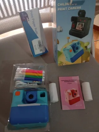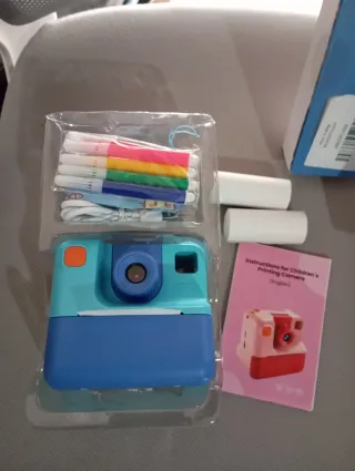 Cámara de fotos instantánea para niños, ideal para capturar y revelar momentos al instante. Incluye accesorios para personalizar las fotos. - Cámara de impresión instantánea. - Incluye rotuladores de colores. - Incluye 8 rollos de papel para impresión.
