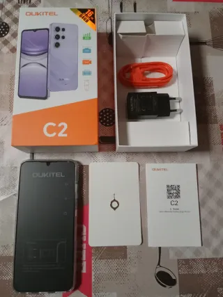 ¡¡¡MAS MOVILES A MUY BUEN PRECIO EN MI PERFIL!!!Teléfono móvil Oukitel C2 con acabado en negro y morado...NUEVO A ESTRENAR...Solo sacado de la caja para hacer fotos...Incluye: móvil,guia,funda,cargador y llave sacar bandeja...PRECIO NO NEGOCIABLE. - 64GB de almacenamiento interno. - Pantalla de 6.52 pulgadas. - Cámara principal de 13MP.