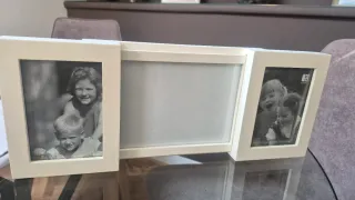 Elegante portafotos doble con un diseño delicado de rosas y hojas. - Material: Metal con acabado blanco. - Capacidad: Dos fotografías. - Estilo: Clásico y romántico.