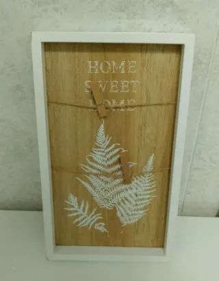 Portafotos decorativo con diseño rústico. - Marco de madera con acabado natural. - Ilustración de helechos en blanco. - Incluye cuerda y dos pinzas de madera para colgar fotos.