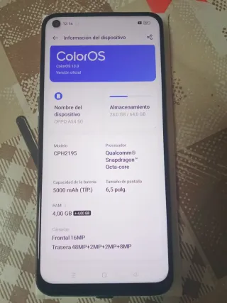 🧐👍OPPO A54 5G...De total 8 GB de RAM (4 GB RAM + 4 GB RAM expandibles) y 64 GB de...Conectividad 5G...En muy buen estado...Muy cuidado...SOLO y NADA MAS tiene la tapa trasera un poco fea,se ha tomado un poco perdiendo un poquito de color debido a la funda mala que llevaba transparente de fábrica,esto es muy común en estás tapas de brillo suelen desgastarse facilmente o perder brillo,no es nada de importancia...Pantalla,lentes cámaras y funcionamiento perfecto (revisado para su venta).1 cristal templado nuevo,1 funda nueva negra,1 cargador nuevo,1 cable,llave bandeja...Características fotos...SERIEDAD...Dudas preguntar.
