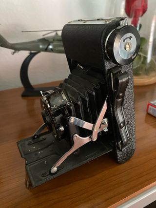 Cámara de fotos antigua, un objeto clásico para coleccionistas. - Diseño plegable. - Correa de transporte.