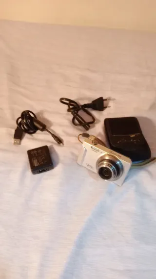 Cámara Casio Exilim EX-ZS100 Color gris. En buen estado. Batería original. Perfecta para hacer fotos retro o fotos en viajes. *Pone marca Canon porque no me deja seleccionar Casio*. Se incluye: • Cargador original de la cámara. • Funda de la cámara. Características: • Sensor de 14.1 Megapixels. • Zoom óptico de 12.5x. • Objetivo NO intercambiable 24-53mm F:4. • Flash integrado en la cámara.