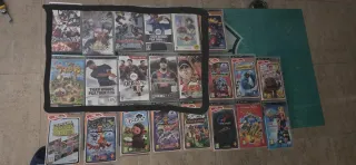 Consola portátil Sony PSP Caja completa con cartoneras y papeles Cables originales + batería original Tarjeta lexar sd 4gb Cámara Sony Funda consola 22 Juegos 12 españoles Manual y disco todos 10 japoneses ( foto con recuadro negro japoneses ) el resto españoles . [ el wining eleven 2011 le falta Manual ] /sega/nintendo/sony/xbox/