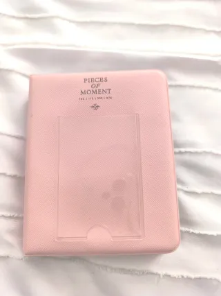 Álbum de fotos con tapa rosa y un diseño elegante. - Compartimento transparente en la portada. - Texto PIECES OF MOMENT en relieve. Perfecto para fotos de cámara instax.